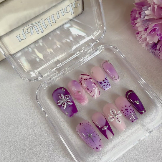 Press-on nails are reusable, salon-quality nails designed to be applied at home in just minutes. Each set is created with unique designs so you can change your style whenever you want—without the time or cost of a salon visit.